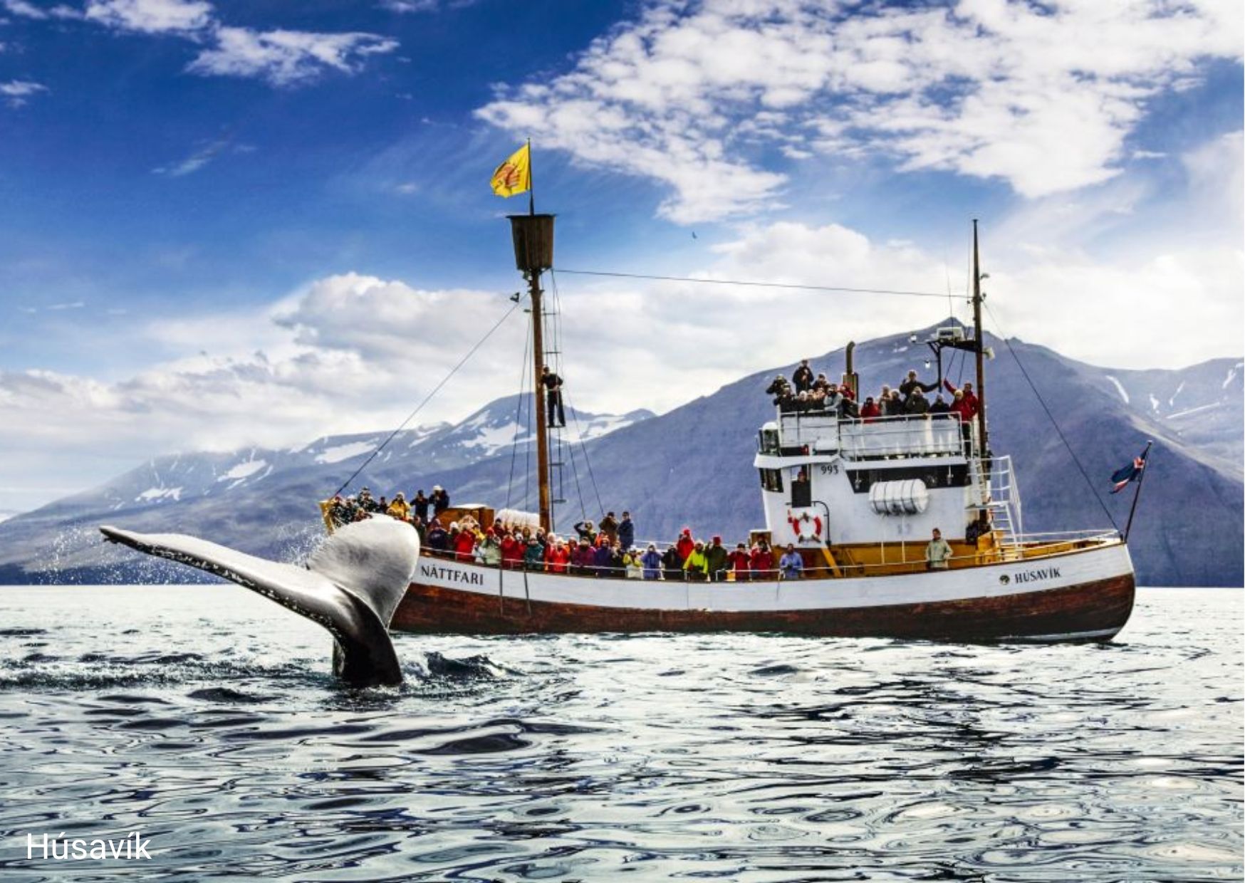 Zeker leuk om te doen is een walvissafari in Húsavík samen met een gids/Bewonder de natuurlijke schoonheid van de baai van Skjálfandi en kom dicht bij walvissen, dolfijnen en zeevogels. Vaar langs de noordkust van IJsland op een traditionele eiken boot.