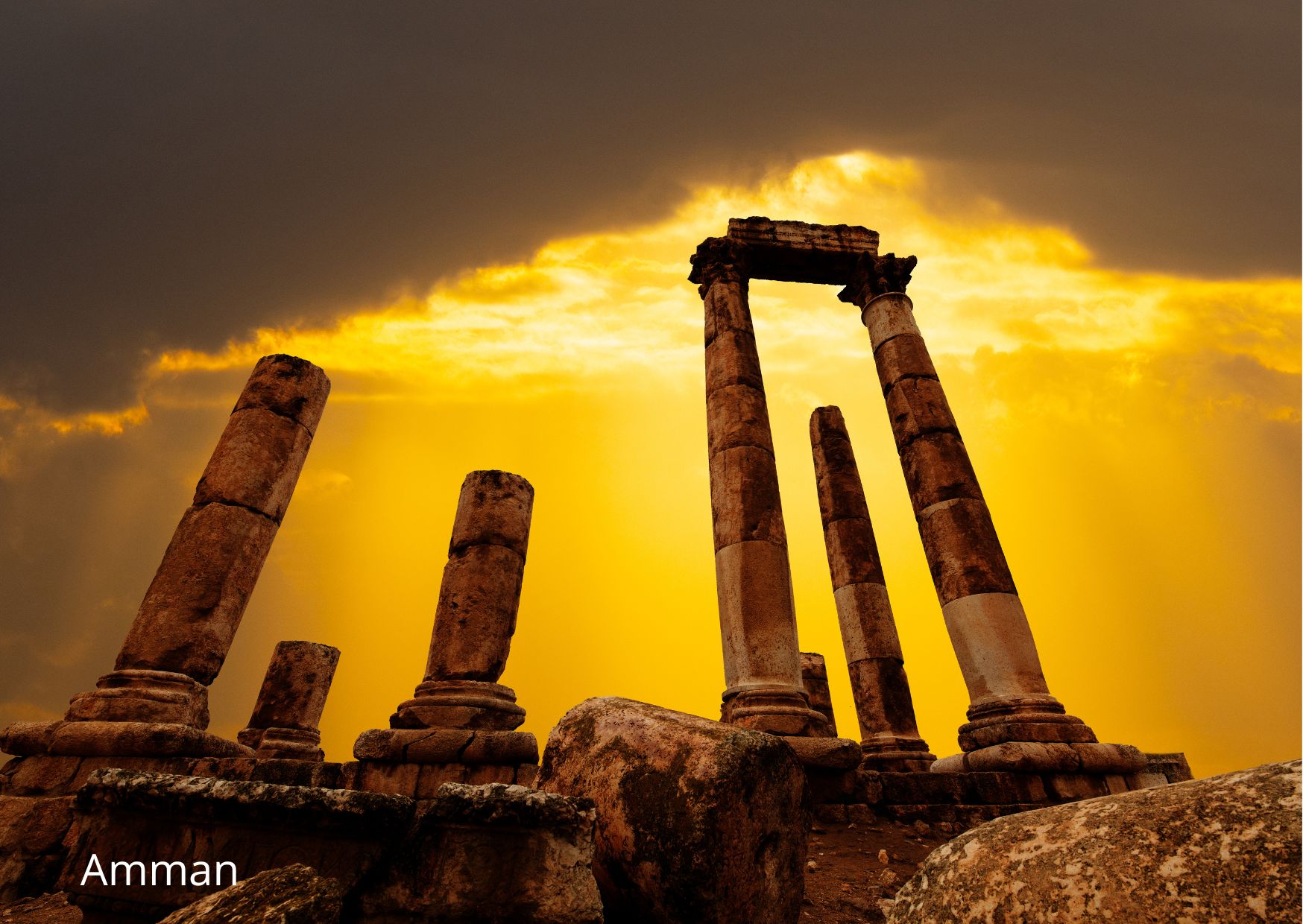 De hoofdstad van Jordanië .Het leuke van deze stad is de fascineerde mix van historische bezienswaardigheden en de moderne wijken. Wat je zeker in deze stad moet bezoeken zijn de Opgravingen van het oude Amman, zoals de Hercules tempel. Het bekende Citadel en het onderaan de heuvel gelegen amfie theater.