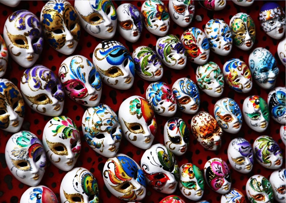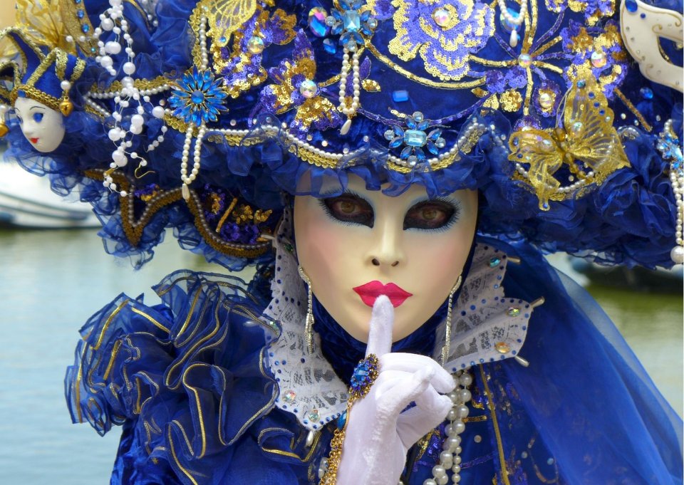 Het dragen van een masker in Venetië gaat terug tot de 13e eeuw. Maskers werden gedragen om de anonimiteit te waarborgen en de sociale status te verbergen. Niemand die een masker droeg kon worden gearresteerd, omdat ze gewoon een rol speelden. Maskers mochten gedragen worden tussen 5 oktober en Kerstmis, op 2e Kerstdag, Vastenavond en tijdens Hemelvaart. In de 18e eeuw werden de wetten aangepast en mocht men nog maar drie maanden per jaar een masker dragen.